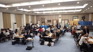 県立広島大学生・西城紫水高校生・地域の方々・教員など、参加者全員で、「西城のさらなる森林資源の活用方法とPR方法」をテーマに、どのような活用方法があるか? また、それをどうPRすればよいか? についてディスカッションを行いました。